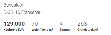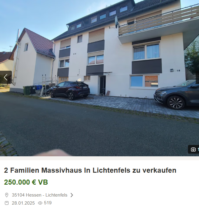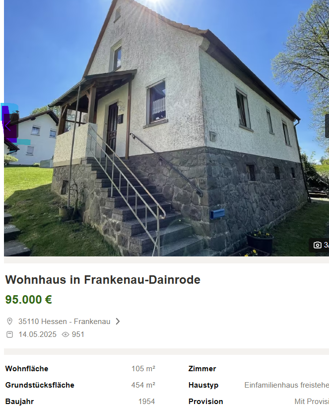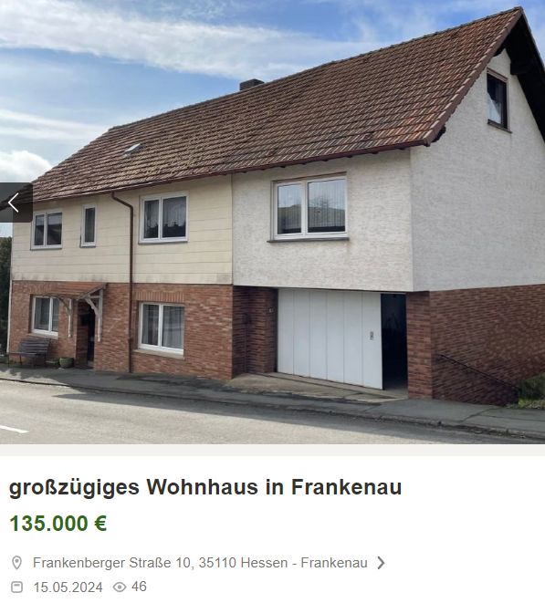 In Frankenberg: app. 50m2, 2 kamers, beneden: ruim 1 ton, veel geld voor weinig huis, de stad is duur.