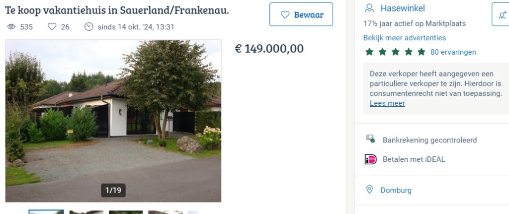 Oktober 2024: mooie vakantiewoning op marktplaats: