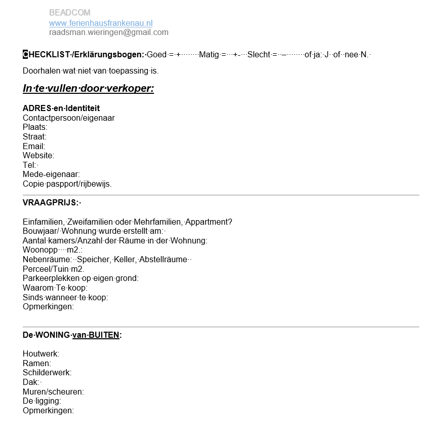Vakantiewoningen, Tips en Advies